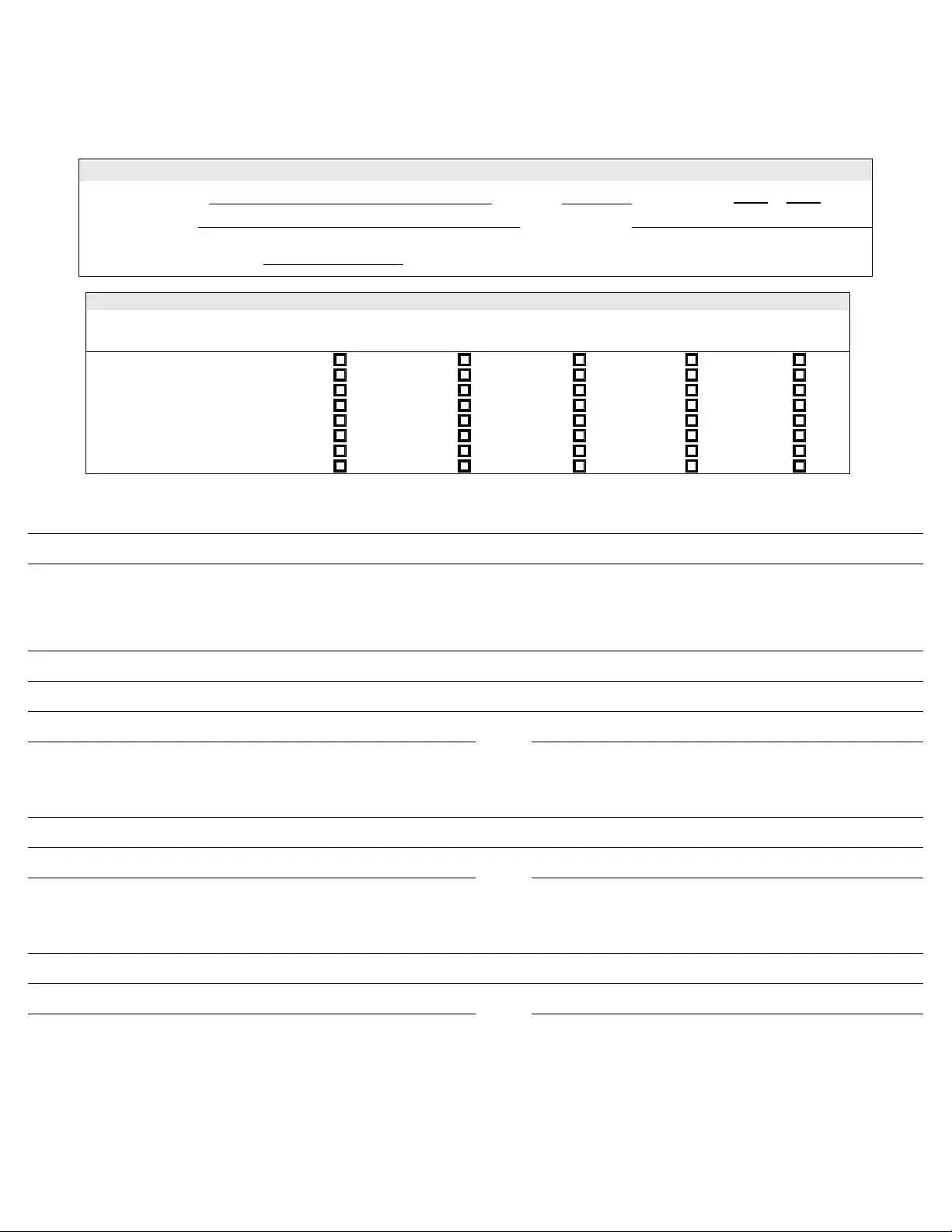 The form evaluates the following areas: