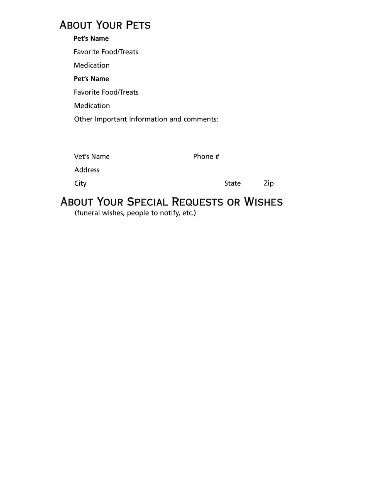 Preparing this information is a helpful way for you to get organized. Plus, it will be a great help to your family, your friends, and even your pets.