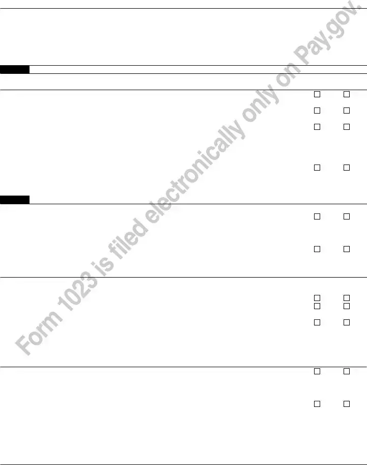 The following “Yes” or “No” questions relate to past, present, or planned relationships, transactions, or agreements with your officers, directors, trustees, highest compensated employees, and highest compensated independent contractors listed in lines 1a, 1b, and 1c.