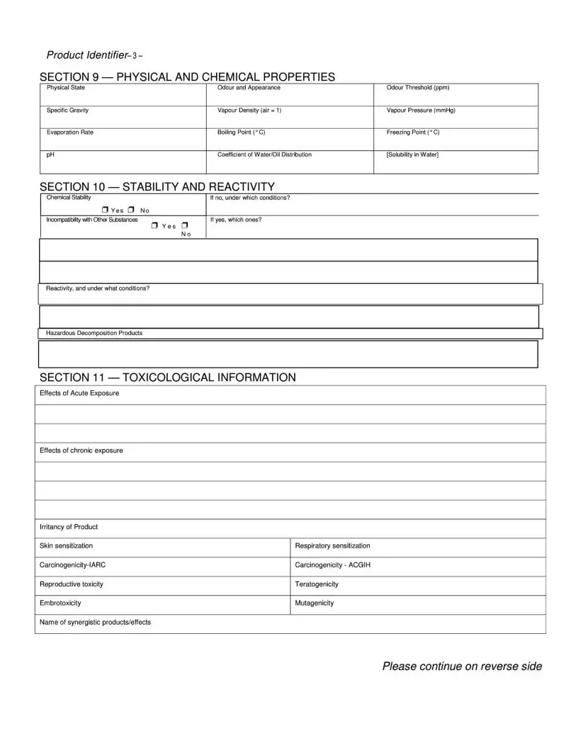 The Material Safety Data Sheet (MSDS) is a crucial document that provides detailed information about a chemical product's hazards and safety measures. It consists of 16 sections, covering everything from product identification to first aid measures and disposal considerations. Understanding how to fill out this form is essential for ensuring safety in the workplace; click the button below to get started.
