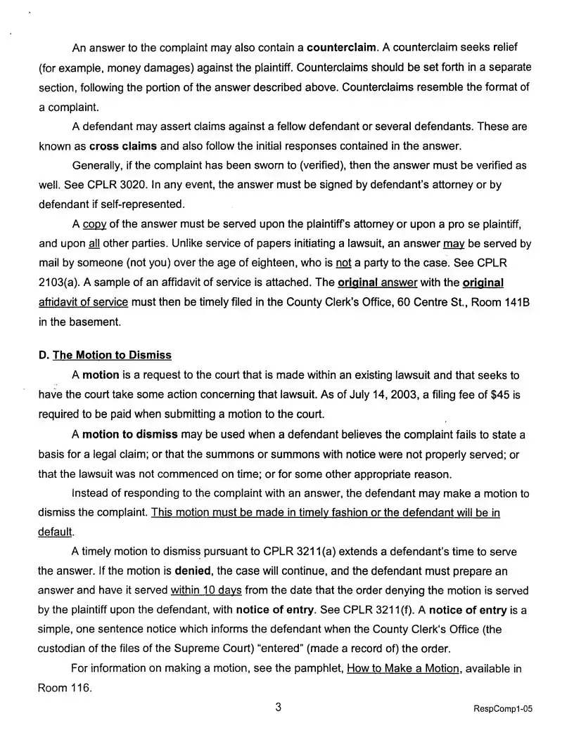 The original Response, along with proof of service, must be filed in the Trial Support Office located at 60 Centre Street, Room 158, on the first floor. Filing the Response in the correct location and within the deadline is crucial to ensure that the defendant does not default on the case.