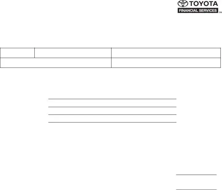 Completing the Toyota Financial Payoff form is a straightforward process. This form must be filled out accurately and signed by the account holder to ensure the proper handling of the vehicle's title and payoff. Follow the steps below to complete the form correctly.